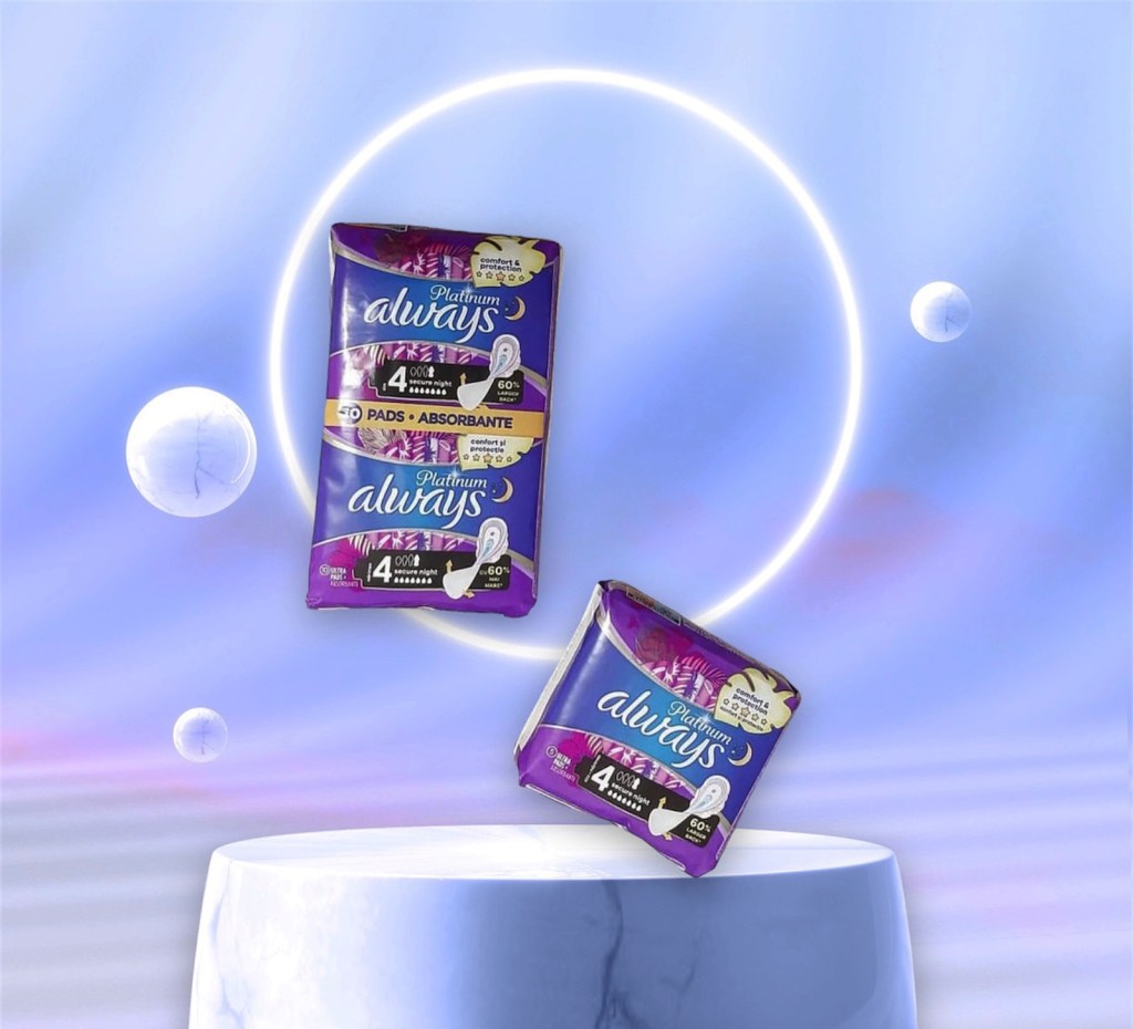Noile absorbante Platinum Secure Night au porțiunea din spate cu 60% mai mare față de Always Platinum cu aripioare măsura 1, ca tu să fii protejată complet chiar și în somn.
